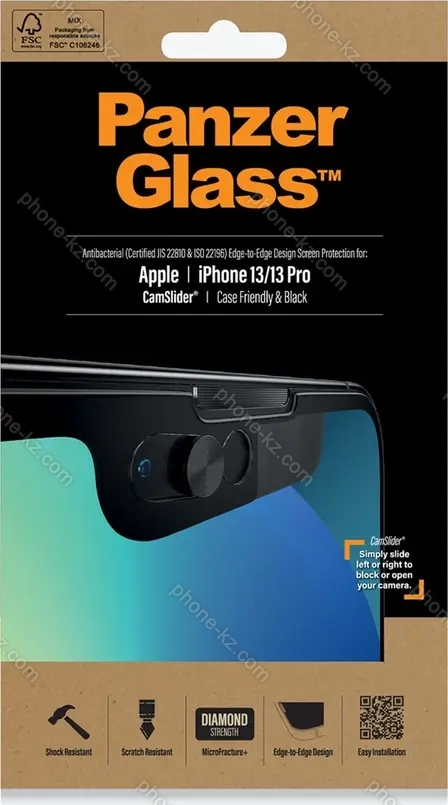 PanzerGlass Edge-to-Edge case Friendly & CamSlider AntiBacterial для Apple iPhone 13/13 Pro black, Казахстан |
