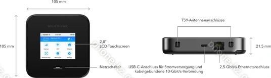 - точка доступа (64 устройства), 2x разъем антенны (мобильная сеть, TS-9), экран (2.8")
