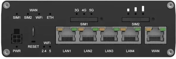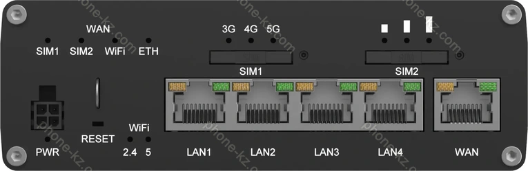 - 5x Gb LAN (1x общий, 1x PoE passive PD), 1x Gb WAN общий, Wi-Fi 6 (WLAN 802.11a/b/g/n/ac/ax), Bluetooth LE, 1x USB-A 2.0