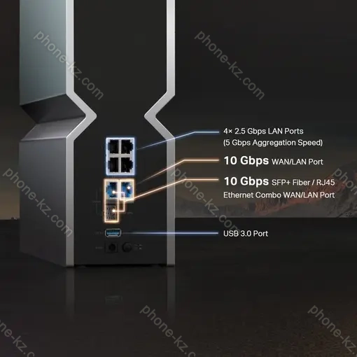 - 1x 10GBase-T (общий с WAN), 1x 10GBase-T/SFP+ (общий с WAN), 4x 2.5GBase-T