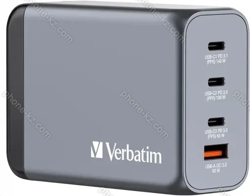 Verbatim 240W GaN charger with 4 connectors grey купить в Алматы: кредит, рассрочка и бесплатная доставка по Казахстану