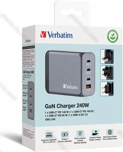 Verbatim 240W GaN charger with 4 connectors grey, Казахстан |