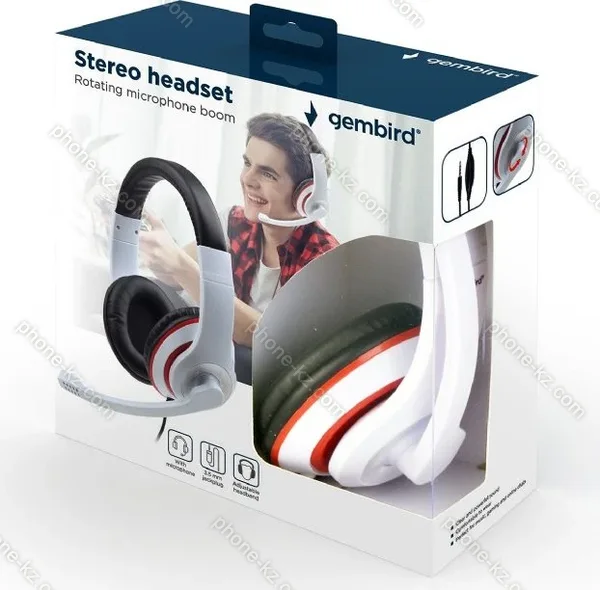 Наушники Gembird MHS-03 weiß/rot/schwarz купить недорого в Казахстане: гарантия качества и оптовые цены