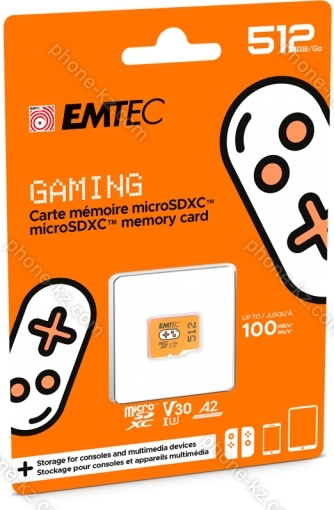 Карта памяти Emtec GAMING R100/W50 microSDXC 256GB, UHS-I U3, A2, Class 10 (ECMSDM512GXCU3G) купить недорого в Казахстане: гарантия качества и оптовые цены
