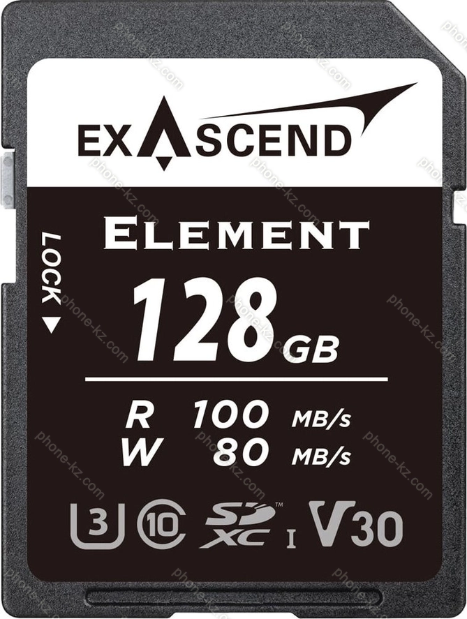 Карта памяти Exascend Element R100/W80 SDXC 128GB, UHS-I U3, Class 10 купить недорого в Казахстане: гарантия качества и оптовые цены