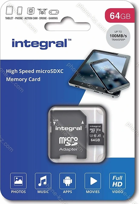 Карта памяти Integral High Speed R100 microSDXC 64GB Kit, UHS-I U1, A1, Class 10 купить недорого в Казахстане: гарантия качества и оптовые цены
