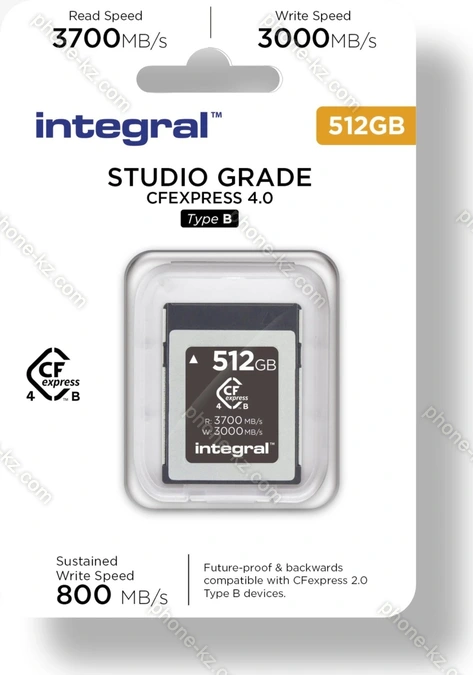 Карта памяти Integral Studio Grade R3700/W3000 CFexpress 4.0 Type B 512GB, Казахстан |