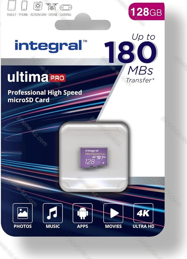 Карта памяти Integral ultima PRO R180/W150 microSDXC 128GB Kit, UHS-I U3, A2, Class 10, Казахстан |