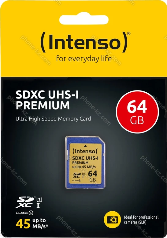 Карта памяти Intenso Premium R45 SDXC 64GB, UHS-I U1, Class 10, Казахстан |