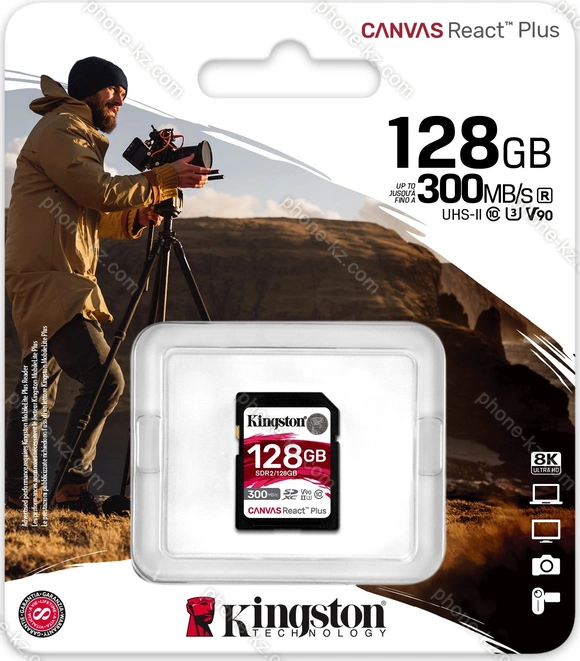Карта памяти Kingston Canvas React Plus R300/W260 SDXC 128GB, UHS-II U3, Class 10, Казахстан |