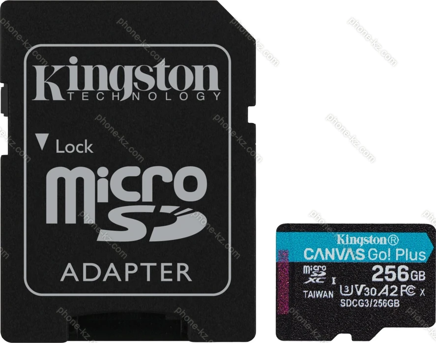 Карта памяти Kingston Canvas Go! Plus R170/W90 microSDXC 256GB Kit, UHS-I U3, A2, Class 10 купить недорого в Казахстане: гарантия качества и оптовые цены