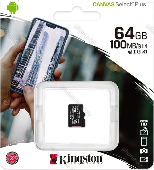 Карта памяти Kingston Canvas Select Plus R100 microSDXC 64GB, UHS-I U1, A1, Class 10, Казахстан |