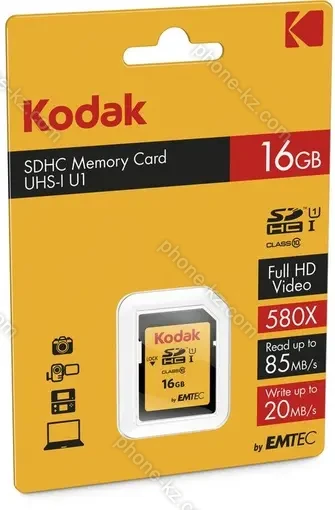 Карта памяти Kodak 580X R85/W20 SDHC 16GB, UHS-I U1, Class 10 купить недорого в Казахстане: гарантия качества и оптовые цены