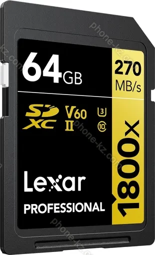 Карта памяти Lexar Professional 1800x Gold Series R280/W210 SDXC 64GB, UHS-II U3, Class 10, Казахстан |