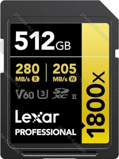 Карта памяти Lexar Professional 1800x Gold Series R270/W180 SDXC 512GB, UHS-II U3, Class 10, Казахстан |