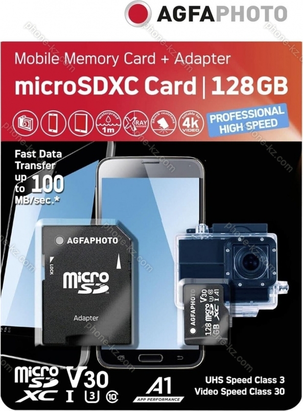 Карта памяти Lupus Imaging AgfaPhoto Prof. High Speed R100/W95 microSDXC 128GB Kit, UHS-I U3, A1, Class 10 (10613) купить недорого в Казахстане: гарантия качества и оптовые цены