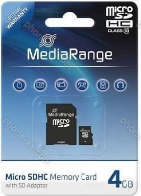 Карта памяти MediaRange microSDHC 4GB Kit, Class 10, Казахстан |
