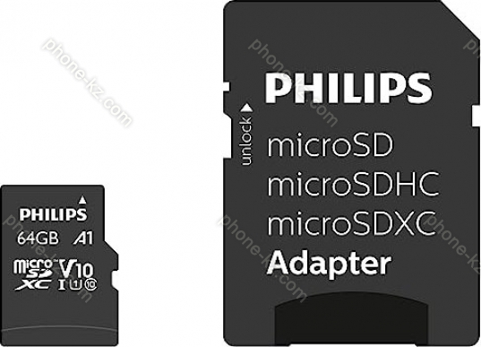 Карта памяти Philips microSDXC 64GB Kit, Class 10, Казахстан |