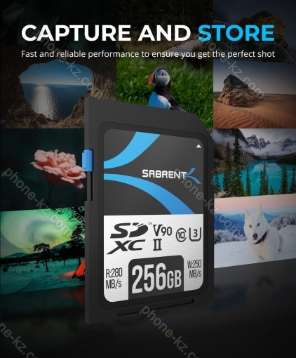 Карта памяти Sabrent Rocket V90 R280/W250 SDXC 256GB, UHS-II U3, Class 10, Казахстан |