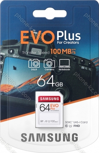 Карта памяти Samsung EVO Plus for Creators R100 SDXC 64GB, UHS-I U1, Class 10, Казахстан |