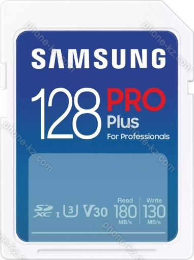 Карта памяти Samsung PRO Plus for Professionals R180/W130 SDXC 128GB, UHS-I U3, Class 10 купить недорого в Казахстане: гарантия качества и оптовые цены