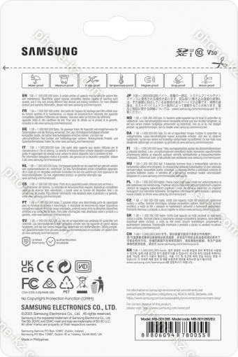 - Скорость передачи данных более 104MB/s для UHS-I возможна только при использовании фирменного устройства чтения.
