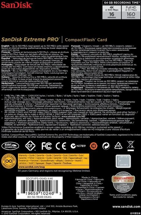 Карта памяти SanDisk Extreme PRO R160/W150 CompactFlash Card 32GB, Казахстан |