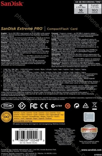 Карта памяти SanDisk Extreme PRO R160/W150 CompactFlash Card 32GB, Казахстан |