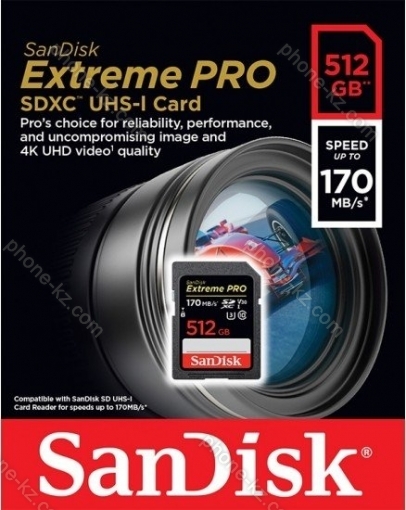 Карта памяти SanDisk Extreme PRO R170/W90 SDXC 512GB, UHS-I U3, Class 10, Казахстан |