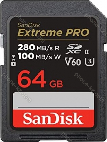 Карта памяти SanDisk Extreme PRO R280/W100 SDXC 64GB, UHS-II U3, Class 10, Казахстан |