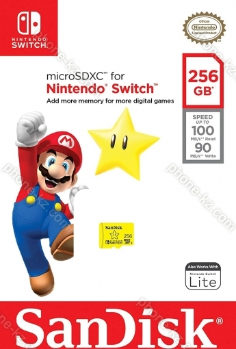 Карта памяти SanDisk Nintendo Switch R100/W90 microSDXC 256GB, UHS-I U3, Class 10, Казахстан |