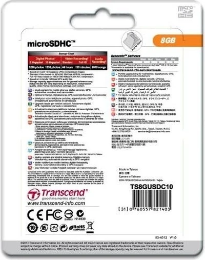Карта памяти Transcend microSDHC 8GB, Class 10, Казахстан |